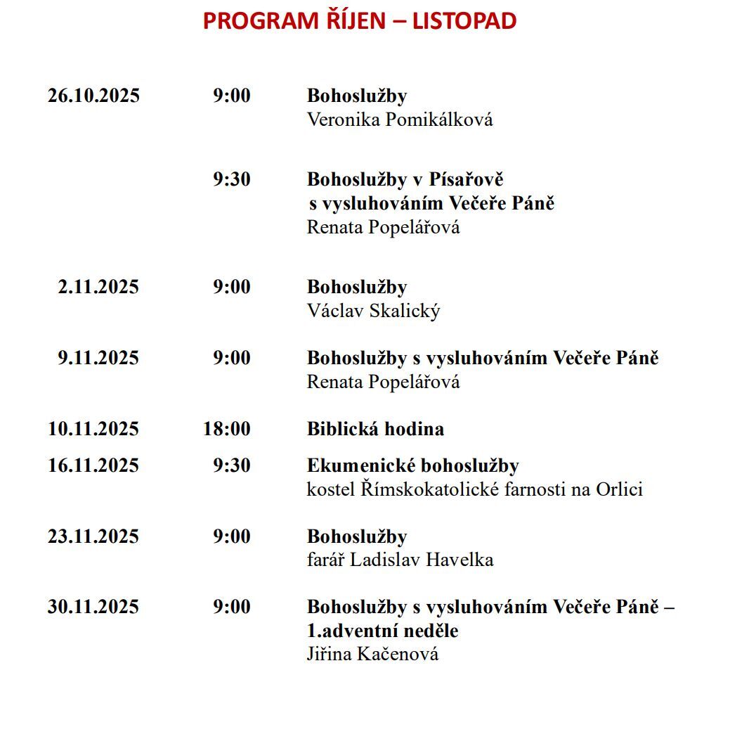 Program sboru říjen - listopad 2025